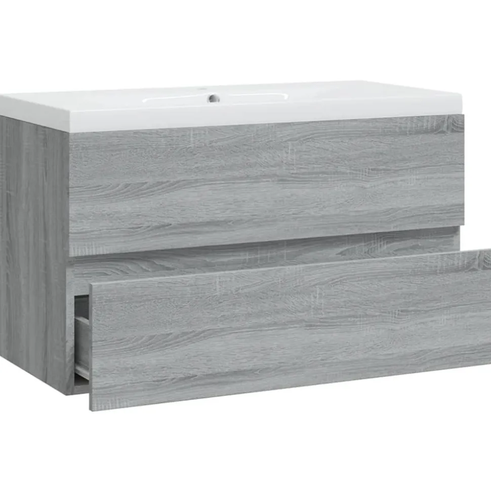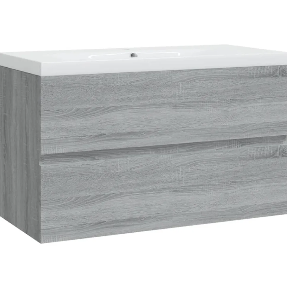 Ce meuble lavabo avec bassin intégré, doté d’un espace de rangement spacieux, est un supplément chic et intemporel à toute salle de bain ou salle d’eau. Matériau robuste : le bois d’ingénierie est d’une qualité exceptionnelle avec une surface lisse et présente également résistance, stabilité et résistance à l’humidité. Fabriqué en céramique, le lavabo intégré est considérablement facile à nettoyer.Grand espace de rangement : le tiroir spacieux de cette armoire de lavabo de salle de bain vous permet de ranger vos affaires.Design élégant : les lignes épurées et le design élégant font que ce meuble lavabo avec bassin s’intègre parfaitement dans votre salle de bain.Fonction de trop-plein : un trop-plein est également équipé pour vidanger l’eau lorsqu’il est trop plein. Remarque :Chaque produit est livré avec un manuel de montage dans la boîte pour un montage facile.Le robinet et le vidange ne sont pas inclus dans la livraison.Les vis et les chevilles pour l’intérieur du mur ne sont pas incluses. Recherchez et utilisez des vis et des chevilles adaptées à vos murs. Si vous n’êtes pas sûr, demandez conseil à un professionnel. Lisez et suivez attentivement chaque étape des instructions.