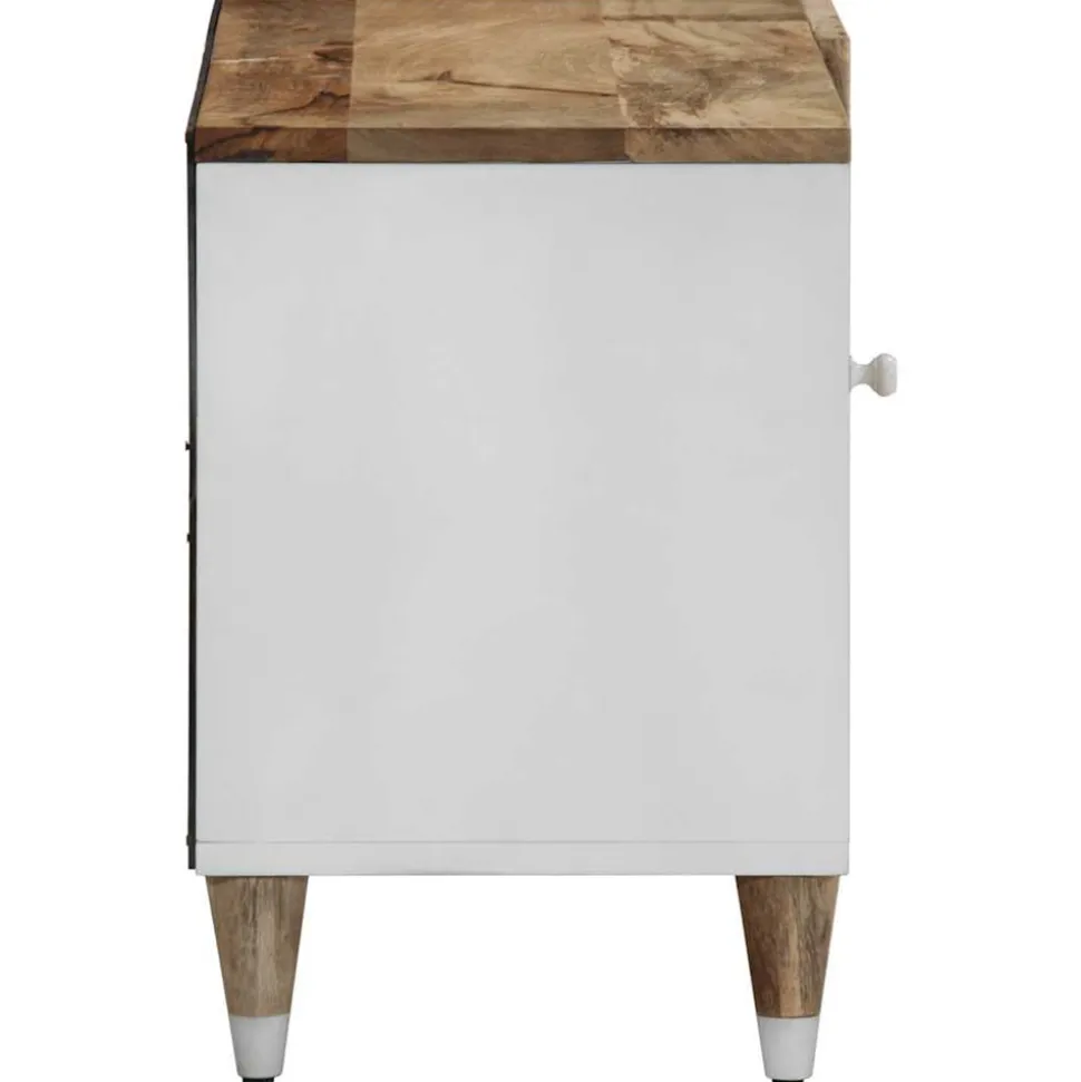 - Matériau : bois de manguier naturel avec écran de peinture blanche, bois d’ingénierie, métal