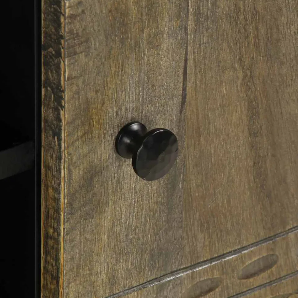 - Matériau : manguier finition gris clair avec façade sculptée, bois d’ingénierie, métal