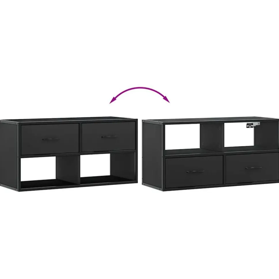 Avec un design à la fois tendance et pratique, ce meuble TV robuste deviendra un point central de votre pièce. Cadre stable et durable : le cadre en métal du meuble TV rehausse votre intérieur d’un style industriel et offre une durabilité, une stabilité et une résistance à la corrosion exceptionnelles.Matériau stable et durable : le bois d’ingénierie est un matériau durable et stable dont la surface lisse résiste à l’humidité, à la déformation et au fendillement, ce qui en fait un choix fiable pour une grande variété de projets.Grand espace de rangement : le meuble TV offre un grand espace de rangement pour garder vos lecteurs DVD, récepteurs, disques et autres petits objets bien organisés et à portée de main.Fonction murale : ce meuble multimédia peut être fixé au mur, vous pouvez facilement l’accrocher au mur sans occuper d’espace au sol. Bon à savoir :Les vis et les chevilles pour l’intérieur du mur ne sont pas incluses. Nous vous conseillons de trouver et d’utiliser des vis et des chevilles adaptées spécifiquement à vos murs. Si vous n’êtes pas sûr, vous pouvez consulter un professionnel. Veuillez lire et suivre chaque étape des instructions.