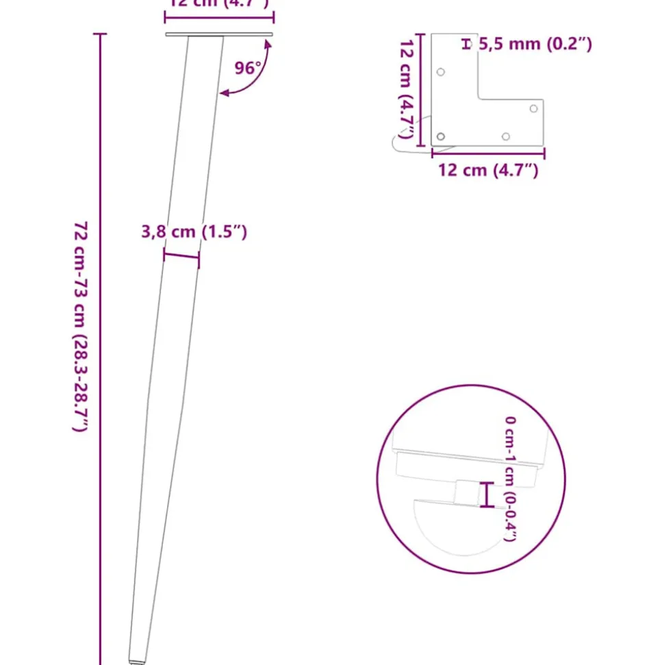 Ces pieds de console allient forme et fonctionnalité. C’est le choix idéal pour personnaliser votre console. Matériau durable : Ce pied de console est fabriqué en acier thermolaqué, ce qui le rend robuste et durable.Conception pratique : Ce pied de console est équipé de patins réglables, assurant une stabilité même sur des sols irréguliers et minimisant les rayures. De plus, le support est doté de trous pré-percés et de vis fournies, qui permettent de fixer le pied au plateau de la table (non inclus), facilitant ainsi l’assemblage.Esthétique moderne : Ce pied de table offre un look élégant et contemporain. Ses lignes épurées et son design géométrique rehaussent l’apparence générale du meuble. Bon à savoir :La livraison comprend uniquement les pieds de table, le plateau n’est pas inclus.