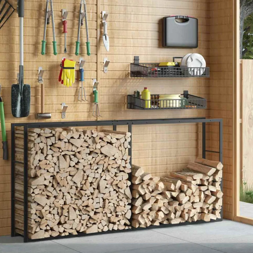 Gardez votre bois de chauffage bien organisé et facilement accessible avec ce support à bois de chauffage robuste, c’est la solution parfaite pour tous vos besoins de stockage de bûches. Cadre robuste et stable : le support est fabriqué en acier avec revêtement en poudre, ce qui le rend solide, stable, durable et résistant à la corrosion et aux intempéries, garantissant des performances durables.Grand espace de rangement : le support à bûches offre suffisamment d’espace pour empiler et stocker les bûches, garantissant que votre bois de chauffage est soigneusement organisé et toujours à portée de main.Plus sec : le support d’empilage de bois maintient les bûches au-dessus du sol, ce qui permet une meilleure circulation de l’air pour empêcher le bois de pourrir et pour sécher davantage le bois de chauffage.Placement flexible : le support à bois de chauffage offre des options de placement polyvalentes, vous permettant de le positionner horizontalement ou verticalement. Que vous préfériez un design compact qui s’adapte parfaitement à un mur ou une configuration spacieuse qui accueille vos bûches, ce support s’adapte à votre espace et à vos besoins sans effort.Utilisation polyvalente : le support de bois de chauffage est conçu pour les granges, les cabanes ou les garages, pour garder le bois de chauffage organisé et accessible. Pour une utilisation en extérieur, placez-le simplement sous un toit ou dans une zone couverte pour protéger les bûches des éléments tout en préservant sa durabilité et sa fonctionnalité. Attention :Pour éviter qu’il ne soit renversé, ce produit doit être utilisé avec le dispositif de fixation au mur fourni. Bon à savoir :Pour une utilisation en extérieur, nous recommandons de le recouvrir d’une housse imperméable ou de le mettre à l’abri.