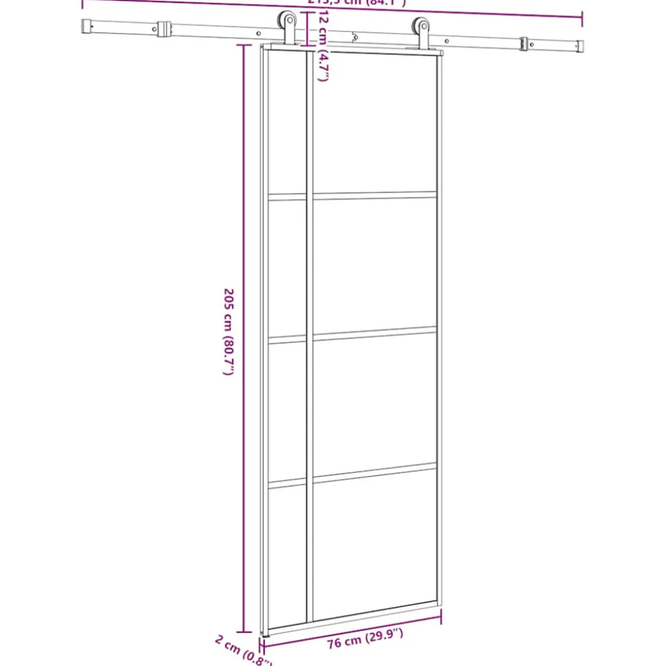 Ajoutez instantanément une touche de style moderne à ta maison avec cette porte coulissante. C’est la solution idéale pour une ouverture peu encombrante. Matériau durable : grâce à sa structure intelligente, le verre trempé est plus solide et plus durable que tout autre verre. Le verre trempé est connu pour résister aux chocs violents, aux rayures, aux coups, etc.Cadre stable et durable : l’aluminium est à la fois léger et durable, avec une excellente résistance à la corrosion grâce à sa couche d’oxyde auto-protectrice. Cette porte en aluminium est conçue pour durer, ce qui en fait un choix idéal pour quiconque recherche une porte robuste.Glissement silencieux et en douceur : grâce aux roulements internes, vos porte coulissante intérieure glissera doucement et silencieusement. Des arrêts de porte sont également inclus pour empêcher le déraillement des rouleaux, tandis que les joints en caoutchouc amortiront la bosse des rouleaux et réduiront le bruit.Design pratique : le panneau de porte est en verre transparent, ce qui laisse entrer beaucoup de lumière dans ta pièce.Design élancé : le design fin du cadre donne à la porte coulissante en verre un aspect moderne et minimaliste.
