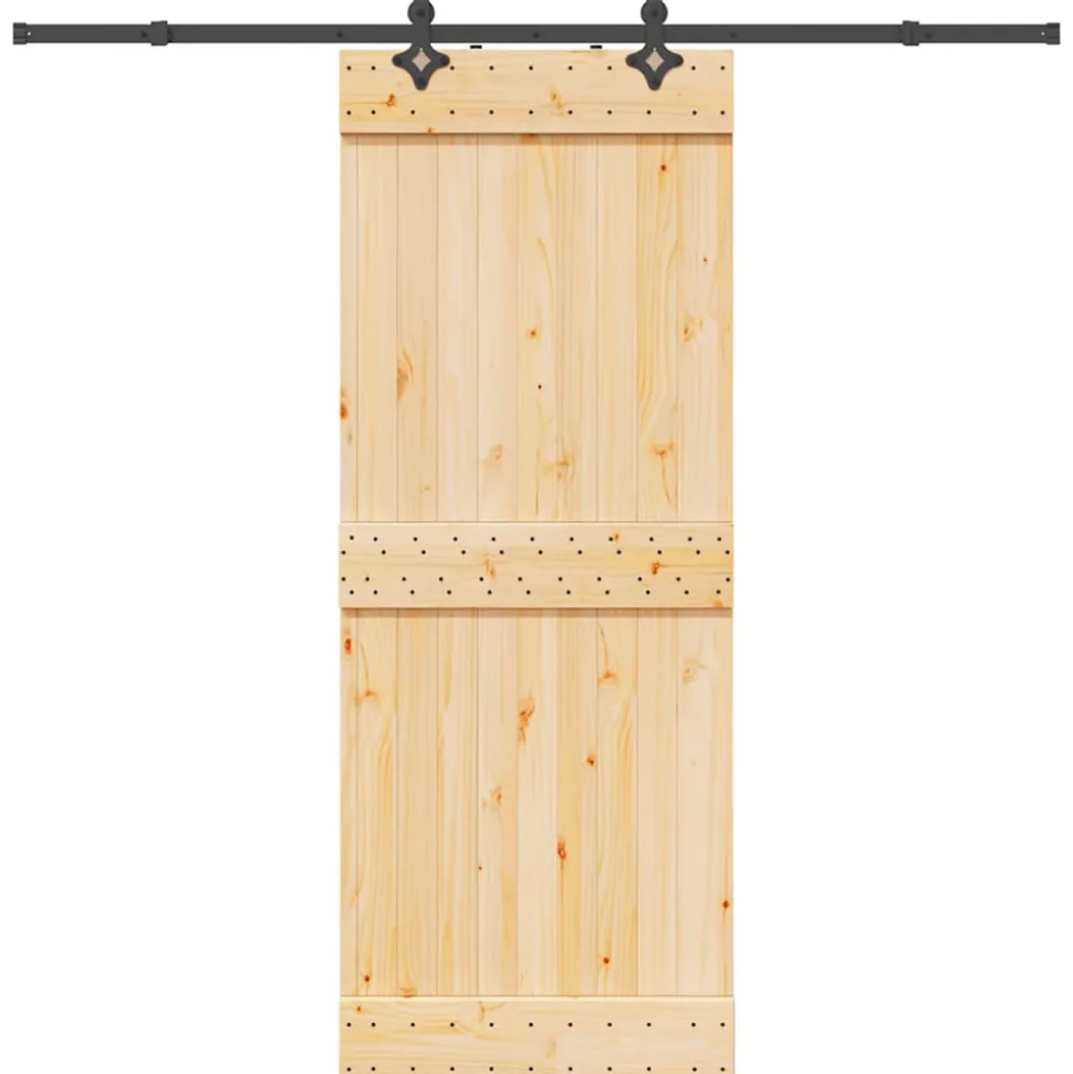 Cette porte coulissante en bois de pin massif est conçue pour enrichir l’entrée de votre maison et assurer une meilleure sécurité pour votre maison. Bois de pin massif : la porte intérieure est fabriquée en bois de pin massif. Le bois de pin solide est un beau matériau naturel. Le bois de pin a un grain droit et les nériau son aspect caractéristique et rustique.Rails coulissants robustes : l’acier est un matériau exceptionnellement dur et résistant. Il offre robustesse et stabilité. Le revêtement en poudre sur l’acier crée une couche protectrice contre l’usure. Fabriqués en acier enduit de poudre, les rails coulissants sont robustes, durables et résistants.Glissement silencieux et en douceur : grâce aux roulements internes, vos porte coulissante intérieure glissera doucement et silencieusement. Des arrêts de porte sont également inclus pour empêcher le déraillement des rouleaux, tandis que les joints en caoutchouc amortiront la bosse des rouleaux et réduiront le bruit.Conception permettant de gagner de l’espace : cette porte coulissante en bois économise de l’espace et semble plus spacieuse. C’est le premier choix pour une conception de maison moderne simple et d’ambiance.Nombreuses applications : la porte de grange coulissante peut être installée aussi bien sur des murs en bois que sur des murs en béton. Elle est idéale pour une utilisation dans la chambre à coucher, la cuisine, la grange, le garage, etc.