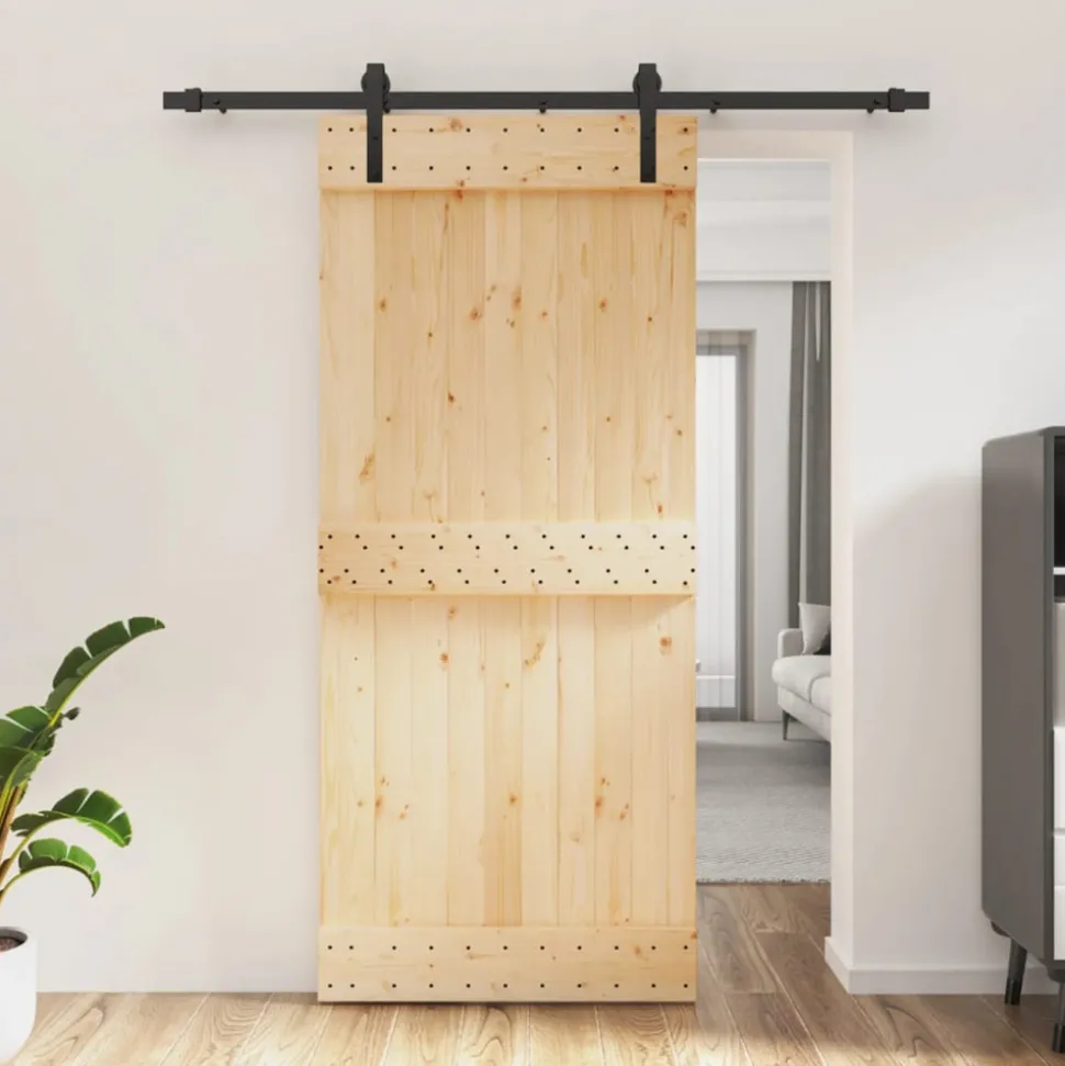 Cette porte coulissante en bois de pin massif est conçue pour enrichir l’entrée de votre maison et assurer une meilleure sécurité pour votre maison. Bois de pin massif : la porte intérieure est fabriquée en bois de pin massif. Le bois de pin solide est un beau matériau naturel. Le bois de pin a un grain droit et les nériau son aspect caractéristique et rustique.Rails coulissants robustes : l’acier est un matériau exceptionnellement dur et résistant. Il offre robustesse et stabilité. Le revêtement en poudre sur l’acier crée une couche protectrice contre l’usure. Fabriqués en acier enduit de poudre, les rails coulissants sont robustes, durables et résistants.Glissement silencieux et en douceur : grâce aux roulements internes, vos porte coulissante intérieure glissera doucement et silencieusement. Des arrêts de porte sont également inclus pour empêcher le déraillement des rouleaux, tandis que les joints en caoutchouc amortiront la bosse des rouleaux et réduiront le bruit.Conception permettant de gagner de l’espace : cette porte coulissante en bois économise de l’espace et semble plus spacieuse. C’est le premier choix pour une conception de maison moderne simple et d’ambiance.Nombreuses applications : la porte de grange coulissante peut être installée aussi bien sur des murs en bois que sur des murs en béton. Elle est idéale pour une utilisation dans la chambre à coucher, la cuisine, la grange, le garage, etc.