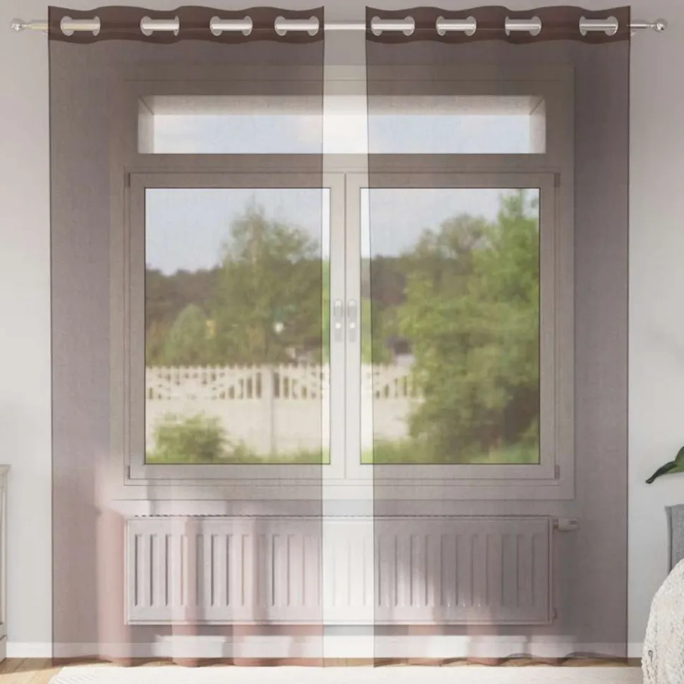 Profitez d’une pièce bien éclairée sans éblouissement excessif avec ces rideaux en voile. Matériau durable : le rideau est composé à 100 % de polyester, ce qui le rend durable et résistant.Conception semi-transparente : le rideau en filet permet à l’air frais de circuler et bloque la lumière du soleil dans une certaine mesure, offrant une sensation de confort tout en protégeant votre espace des regards indiscrets.Œillets supérieurs faciles à accrocher : le panneau de rideau est conçu avec 8 œillets sur le dessus, ce qui rend l’installation simple et permet un mouvement fluide sur les tringles à rideaux.Utilisation polyvalente : le rideau transparent est parfait pour être superposé avec des rideaux plus lourds ou utilisé seul pour un look frais et minimaliste.Lavable : le rideau est lavable à basse température, ce qui le rend facile à entretenir. Bon à savoir :La tringle à rideau n’est pas incluse dans la livraison.