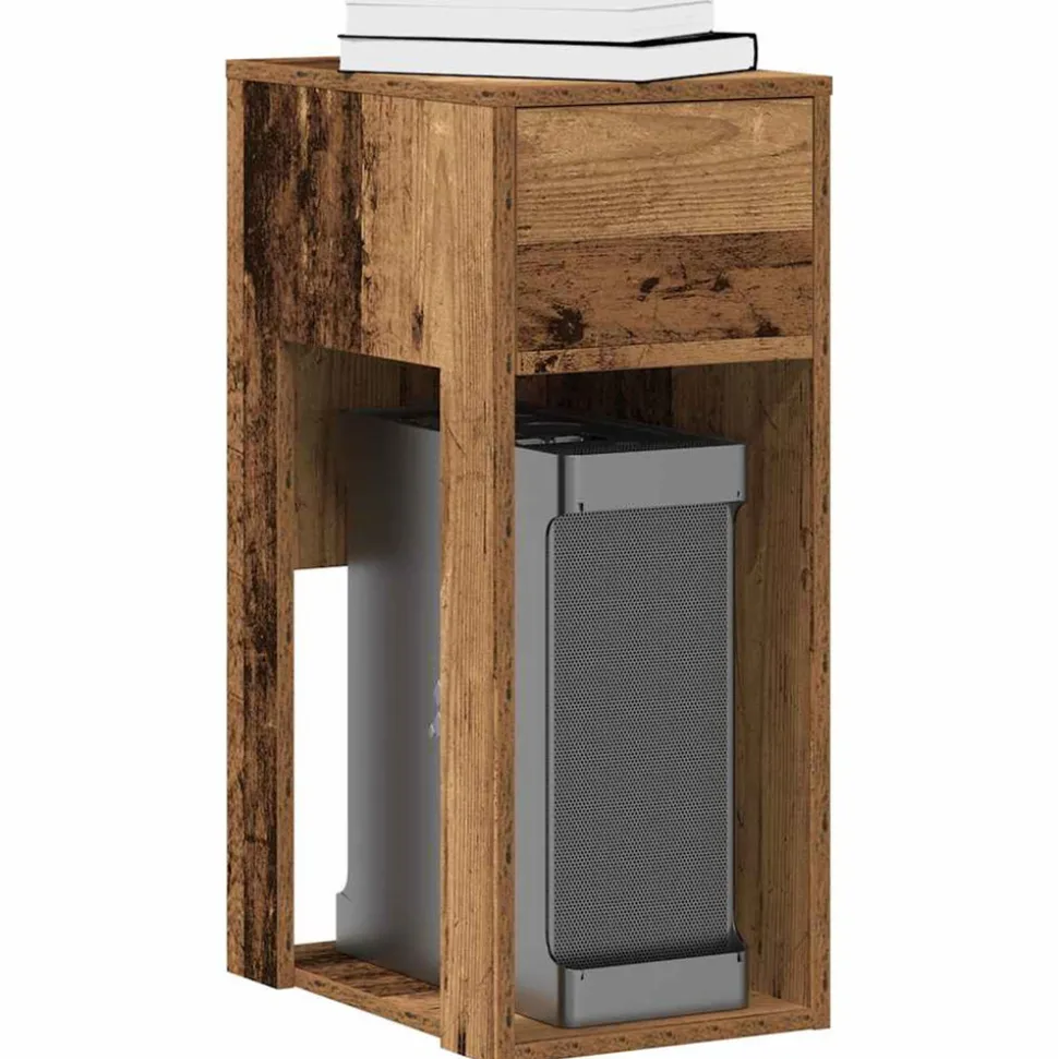 Le support de tour d’ordinateur offre un espace de rangement tout en protégeant le boîtier de l’ordinateur contre les chutes et les rayures. Matériau stable et durable : le bois d’ingénierie est un matériau durable et stable dont la surface lisse résiste à l’humidité, à la déformation et au fendillement, ce qui en fait un choix fiable pour une grande variété de projets.Grand espace de rangement : l’armoire informatique comprend un compartiment inférieur ouvert pour le boîtier de l’ordinateur, une surface supérieure pour les livres et les documents, et un tiroir pratique pour ranger soigneusement les câbles, les chargeurs et autres petits objets essentiels, afin que votre espace de travail reste organisé et sans encombrement.Utilisation polyvalente : qu’elle soit utilisée comme support de tour d’ordinateur ou comme table d’appoint, l’armoire s’adapte à différents environnements, offrant une combinaison idéale de fonctionnalité et de style pour les bureaux à domicile et les espaces de vie.Facile à entretenir : grâce à sa surface lisse, le porte-serviettes PC se nettoie facilement à l’aide d’un chiffon humide et nécessite peu d’entretien. Attention :Pour éviter qu’il ne bascule, ce produit doit être utilisé avec le dispositif de fixation murale fourni.