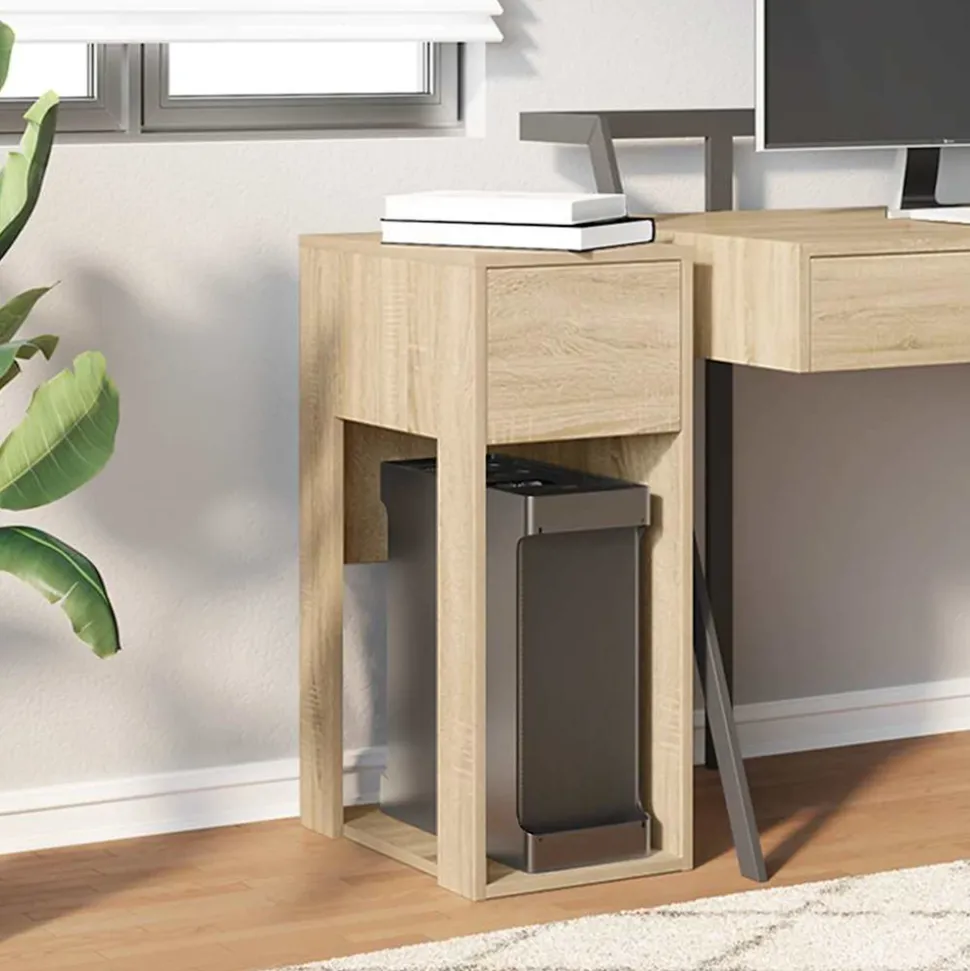 Le support de tour d’ordinateur offre un espace de rangement tout en protégeant le boîtier de l’ordinateur contre les chutes et les rayures. Matériau stable et durable : le bois d’ingénierie est un matériau durable et stable dont la surface lisse résiste à l’humidité, à la déformation et au fendillement, ce qui en fait un choix fiable pour une grande variété de projets.Grand espace de rangement : l’armoire informatique comprend un compartiment inférieur ouvert pour le boîtier de l’ordinateur, une surface supérieure pour les livres et les documents, et un tiroir pratique pour ranger soigneusement les câbles, les chargeurs et autres petits objets essentiels, afin que votre espace de travail reste organisé et sans encombrement.Utilisation polyvalente : qu’elle soit utilisée comme support de tour d’ordinateur ou comme table d’appoint, l’armoire s’adapte à différents environnements, offrant une combinaison idéale de fonctionnalité et de style pour les bureaux à domicile et les espaces de vie.Facile à entretenir : grâce à sa surface lisse, le porte-serviettes PC se nettoie facilement à l’aide d’un chiffon humide et nécessite peu d’entretien. Attention :Pour éviter qu’il ne bascule, ce produit doit être utilisé avec le dispositif de fixation murale fourni.