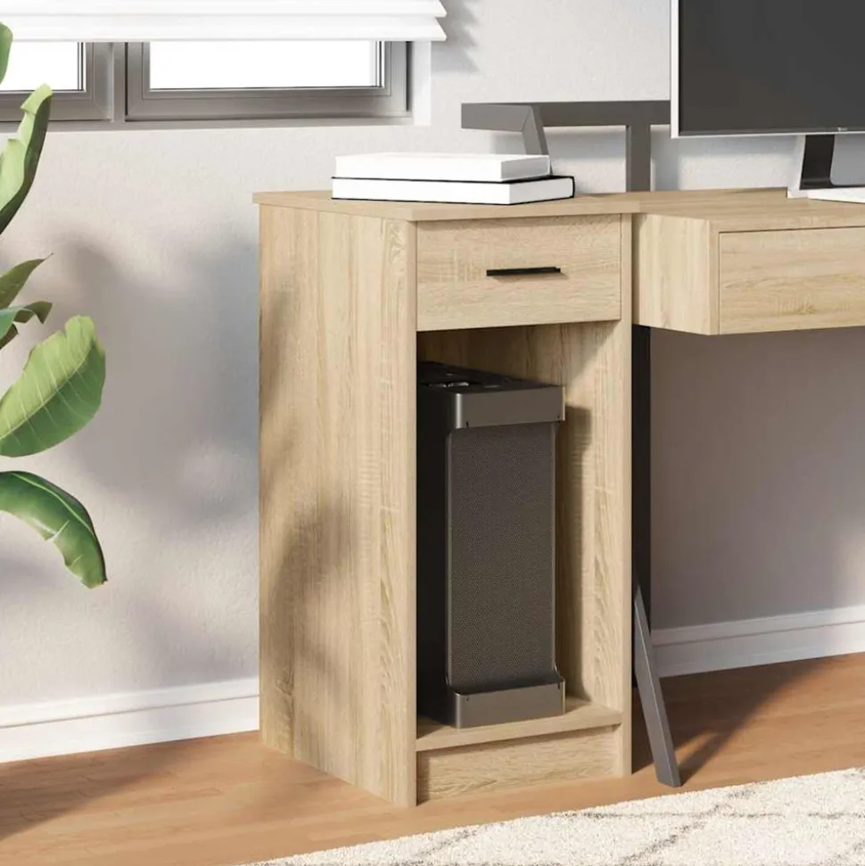 Le support de tour d’ordinateur offre un espace de rangement tout en protégeant le boîtier de l’ordinateur contre les chutes et les rayures. Matériau stable et durable : le bois d’ingénierie est un matériau durable et stable dont la surface lisse résiste à l’humidité, à la déformation et au fendillement, ce qui en fait un choix fiable pour une grande variété de projets.Grand espace de rangement : l’armoire informatique comprend un compartiment inférieur ouvert pour le boîtier de l’ordinateur, une surface supérieure pour les livres et les documents, et un tiroir pratique pour ranger soigneusement les câbles, les chargeurs et autres petits objets essentiels, afin que votre espace de travail reste organisé et sans encombrement.Utilisation polyvalente : qu’elle soit utilisée comme support de tour d’ordinateur ou comme table d’appoint, l’armoire s’adapte à différents environnements, offrant une combinaison idéale de fonctionnalité et de style pour les bureaux à domicile et les espaces de vie.Facile à entretenir : grâce à sa surface lisse, le porte-serviettes PC se nettoie facilement à l’aide d’un chiffon humide et nécessite peu d’entretien. Attention :Pour éviter qu’il ne bascule, ce produit doit être utilisé avec le dispositif de fixation murale fourni.