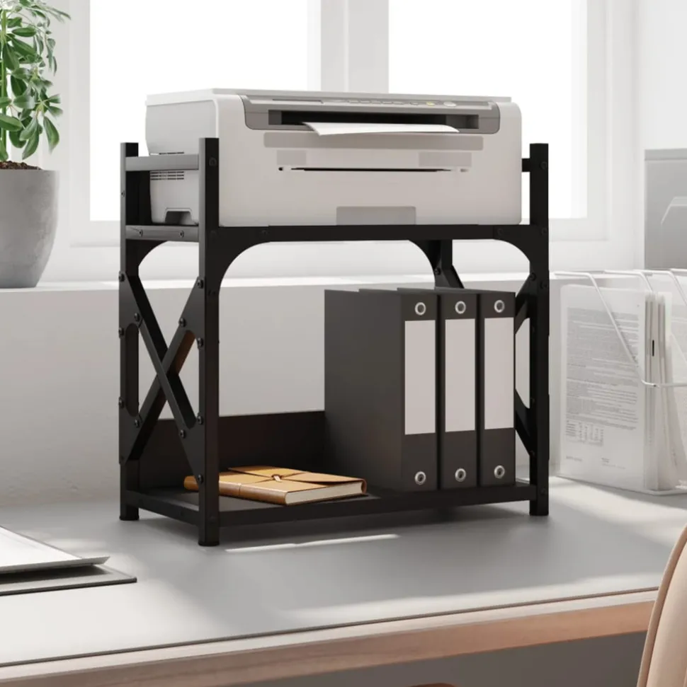 Le support d’imprimante à 2 niveaux permet de garder tout à portée de main et de rendre votre lieu de travail organisé et bien rangé. Matériau robuste et durable : le bois d’ingénierie est d’une qualité exceptionnelle avec une surface lisse et présente également résistance, stabilité et résistance à l’humidité. Le cadre métallique de l’organisateur de bureau assure robustesse et stabilité.Support d’imprimante à 2 niveaux : l’étagère supérieure est conçue pour les imprimantes, et les télécopieurs tandis que l’étagère inférieure est destinée aux dossiers et aux papiers à imprimer. Gardez tout facilement accessible et votre lieu de travail organisé et bien rangé.Pieds réglables : quatre pieds réglables avec des bouchons en plastique maintiennent la table pour imprimante en équilibre sur un sol inégal et augmentent sa stabilité.Organisateur de bureau multifonctionnel : l’organisateur de dossiers peut être utilisé non seulement comme support d’imprimante, mais aussi comme bibliothèque, table de chevet, table basse, table d’appoint, etc. Il peut aussi être largement utilisé dans la cuisine pour ranger les pots de condiments, les ustensiles de cuisine, les assiettes et les plats.