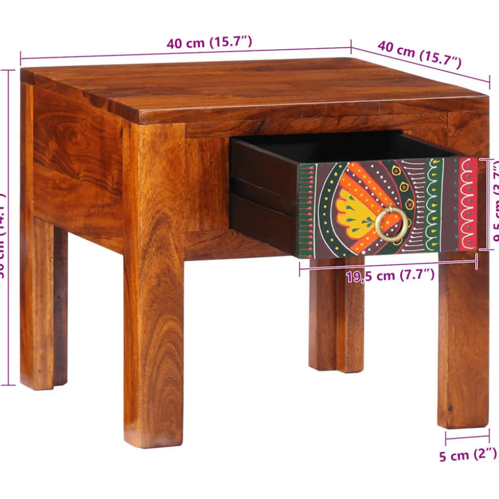 Introduisez un air de charme dans le décor actuel de votre pièce avec cette table de chevet élégante ! Matériau robuste et stable : le bois d’acacia massif est connu pour sa solidité et sa durabilité. Ses couleurs variées et ses grains uniques lui confèrent un aspect attrayant. Sa stabilité et sa résistance aux intempéries en font un matériau idéal pour la fabrication de meubles d’intérieur et d’extérieur.Grand espace de rangement : la table de chevet offre un grand espace de rangement pour les magazines, les livres, les verres et autres objets essentiels du coucher, les gardant organisés et à portée de main.Pieds en bois : la table de chevet est soutenue par des pieds en bois robustes, assurant stabilité, sécurité et fermeté.Dessus robuste : le dessus robuste de la table de chevet est parfait pour placer des lampes de table, des réveils, des livres, des cadres photo, des petites plantes en pot, des décorations ou d’autres objets essentiels.Facile à entretenir : grâce à sa surface lisse, la table de chevet se nettoie facilement à l’aide d’un chiffon humide et nécessite peu d’entretien. Bon à savoir :Chaque article est unique, avec des variations de couleurs et de grains. La livraison est aléatoire, ce qui garantit l’exclusivité et l’individualité de votre produit.