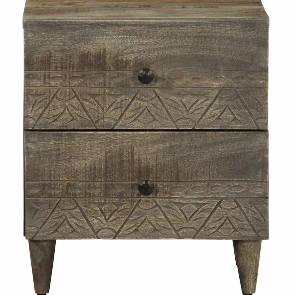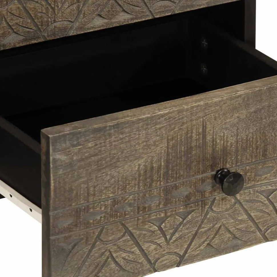 - Matériau : manguier finition gris clair avec façade sculptée, bois d’ingénierie, métal