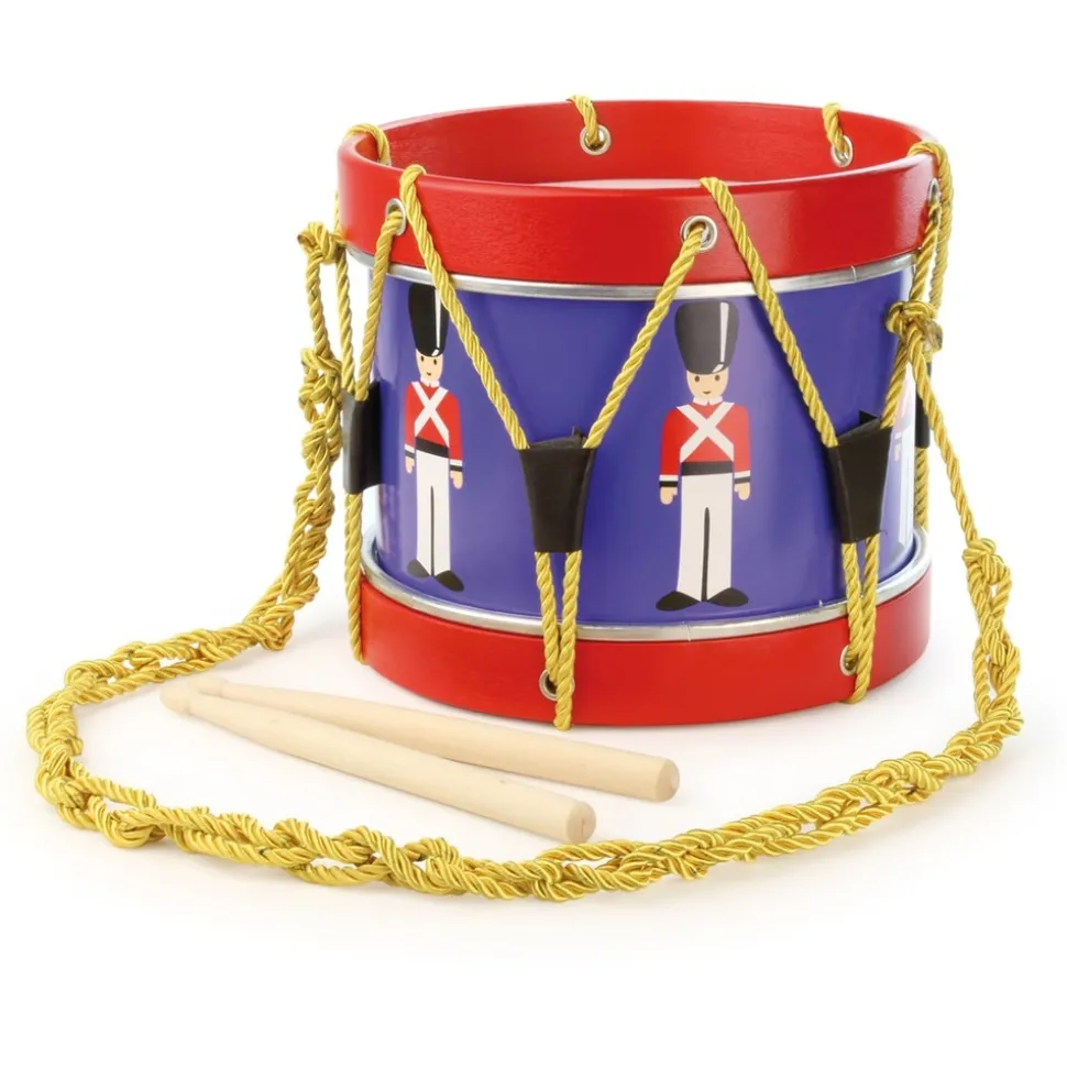 Ce superbe tambour, accompagné de 2 baguettes en bois, est joliment illustré avec des « Wels Gardes », gardes anglais de Buckingham Palace. D’une très belle finition, un cordon tressé doré permet à votre enfant de porter facilement ce tambour autour de son cou. Votre enfant va peut-être se découvrir une nouvelle passion ! Le petit tambour, un magnifique tambour en bois de la marque Vilac. Réf : 8334.
