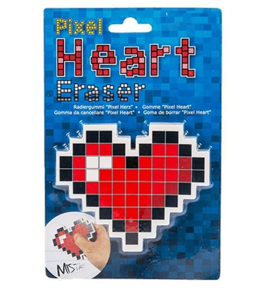 La gomme pixelisée coeur conviendra parfaitement aux fans du jeu vidéo Minecraft ou aux informaticiens et aux graphistes utilisant régulièrement les pixels. Cette gomme pixels colorée et originale vous démarquera de vos collègues et deviendra un réel objet insolite pour décorer votre bureau. Dimensions : 10 x 8,5 cm