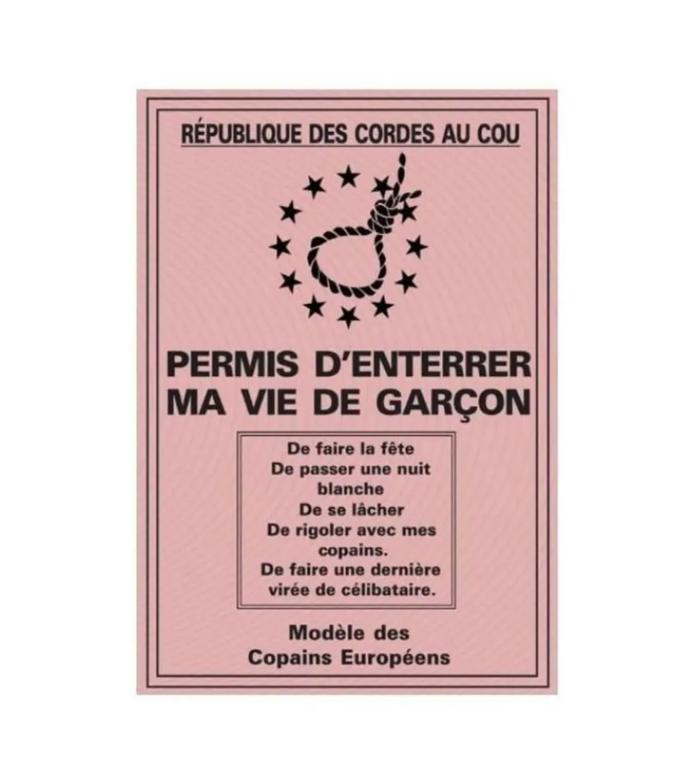 Offrez ce permis au futur marié qui contient quelques dizaines de gages, sa photo et plein de bonnes idées : faire la fête, passer une nuit blanche, se lâcher, rigoler avec mes copains, faire une dernière virée de célibataires… 3 volets. Dimensions : 21 x 15 cm